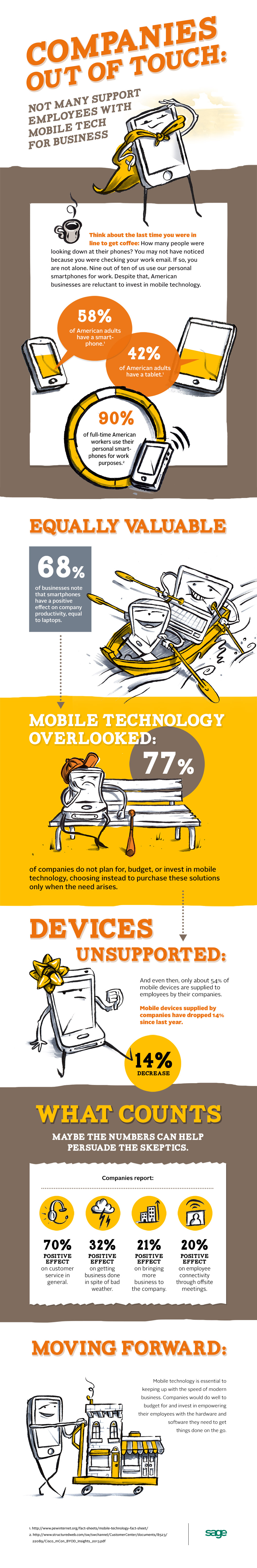 Mobile device information for small and medium-sized businesses 2014 and 2013 Survey results on how mobile devices have impacted their businesses.
